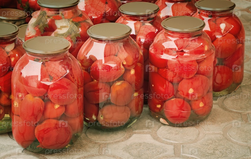 Консервированные помидоры в больших стеклянных банках
