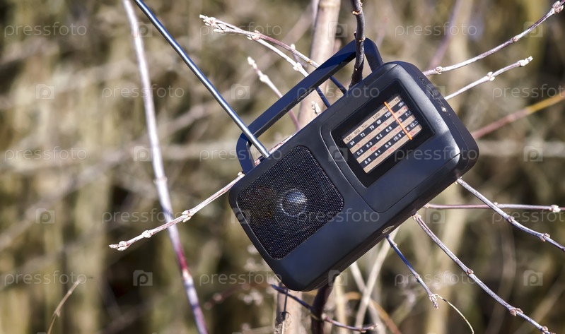 Небольшое радио на ветвях дерева