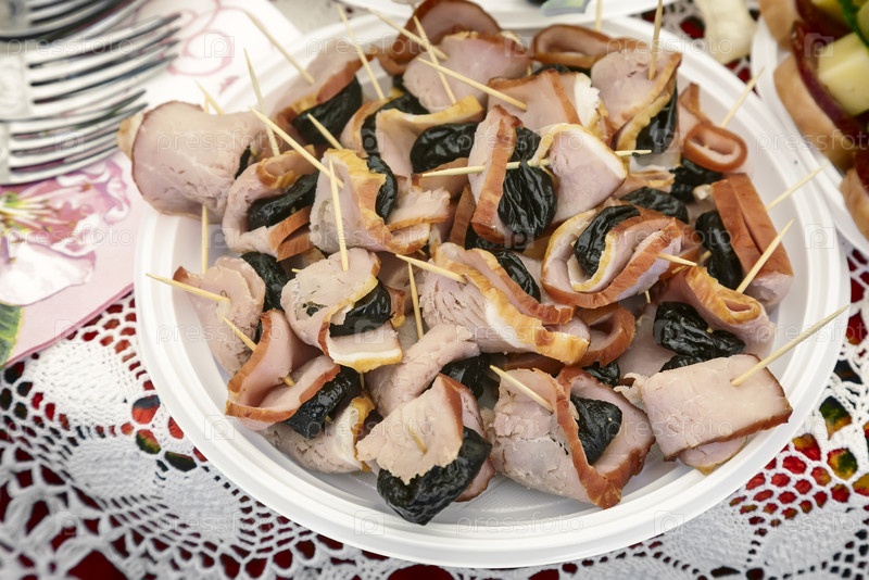 Закуска: ветчина и чернослив на шпажках
