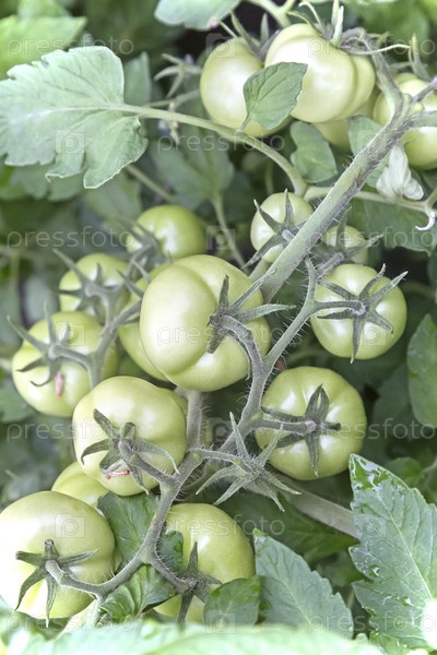Созревание зеленых помидор на ветке