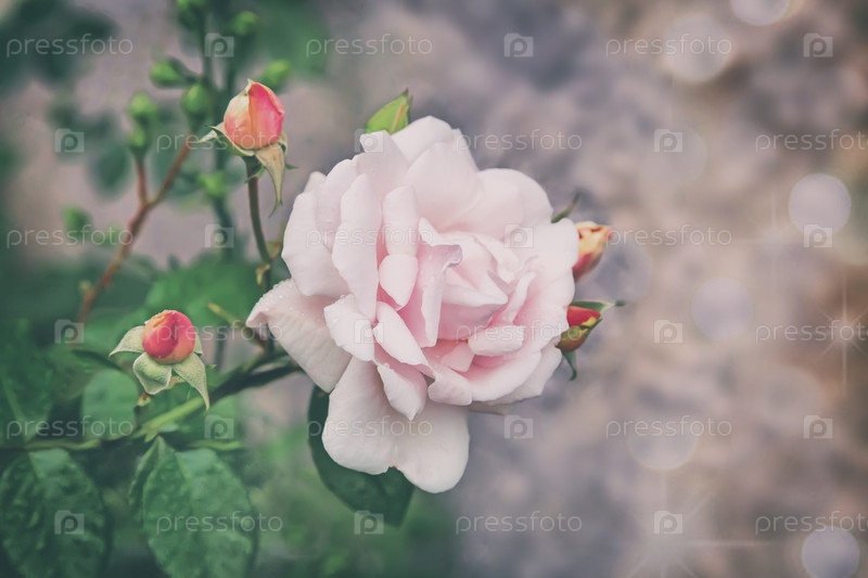 Красивая цветущая роза с зелеными листьями