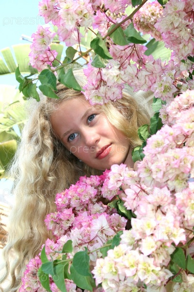 Девушка с розовыми цветами