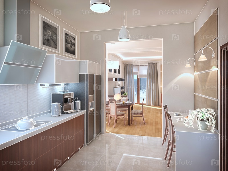 Интерьер кухни. 3D иллюстрации