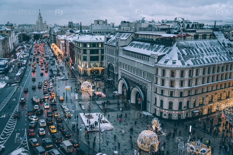 Автомобильная пробка в центре Москвы в зимний период