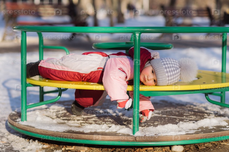Маленький ребенок играет на улице в зимний период