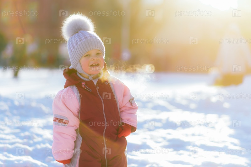 Маленький ребенок кричит на открытом воздухе в зимний период