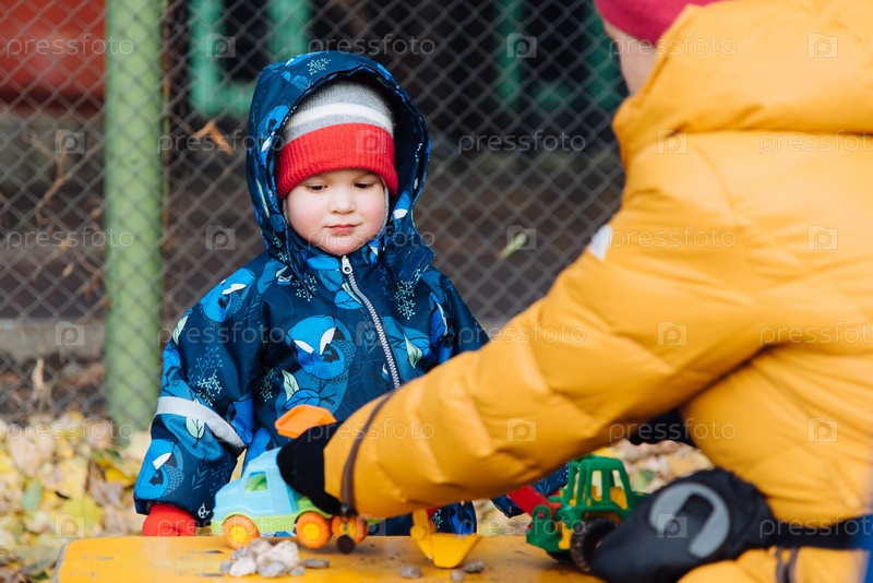 Мама и сын играют на детской площадке
