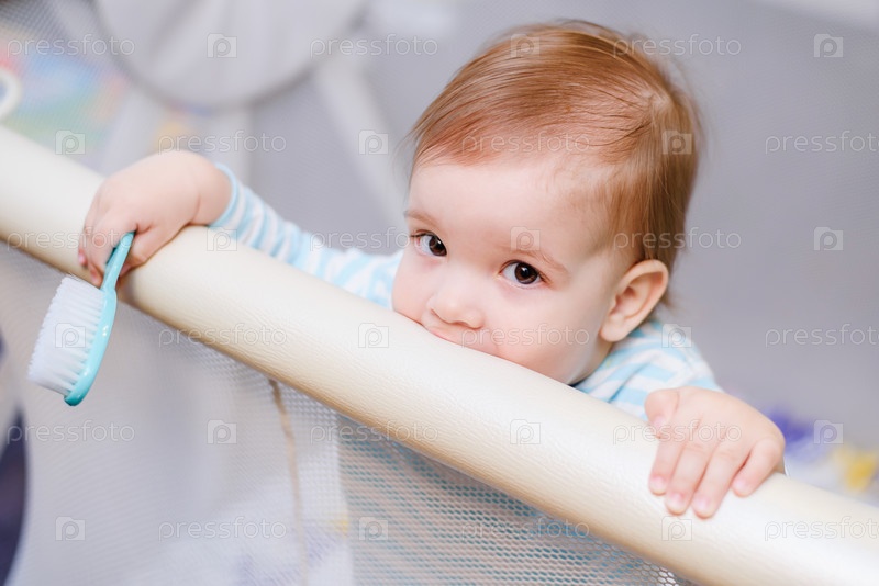Ребенок сидит в манеже