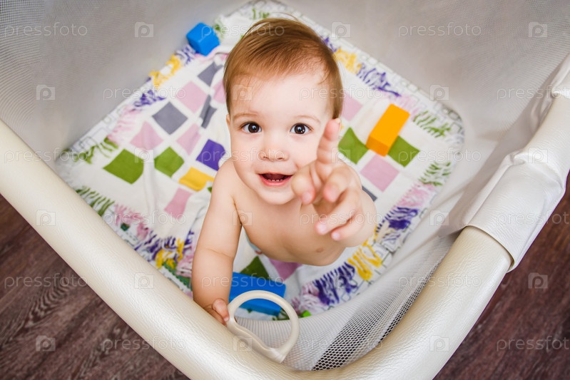 Ребенок сидит в манеже