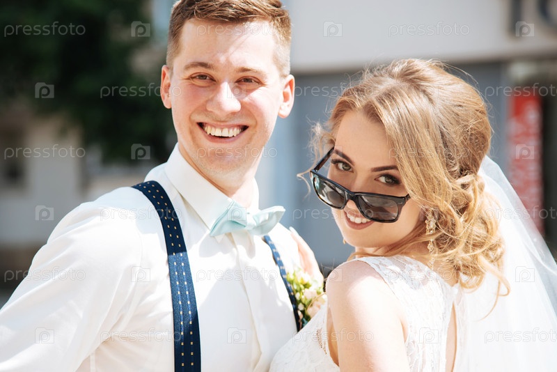 Жених и невеста позируют для камеры