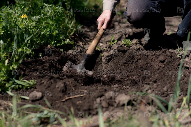 Человек копает землю лопатой