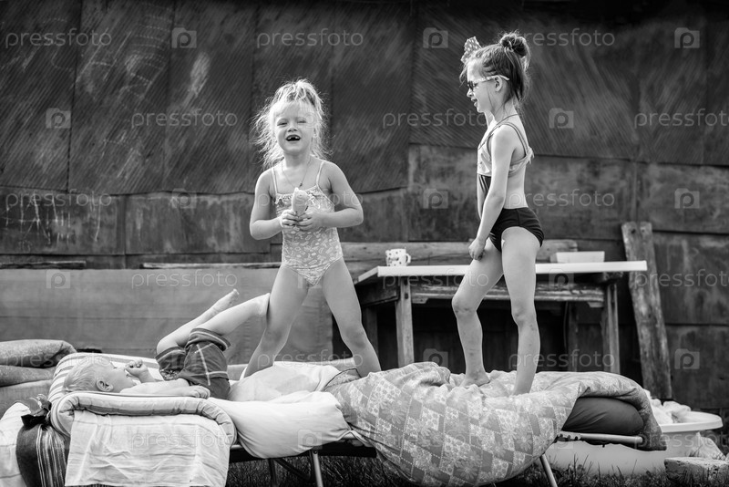 Деревенские дети играют во дворе