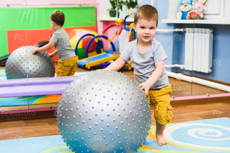 Маленький ребенок играет в тренажерном зале