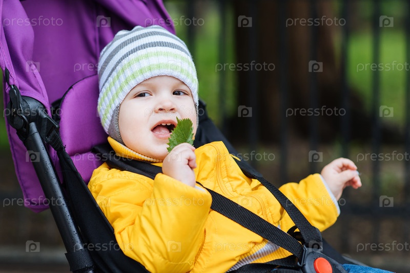 Маленький ребенок сидит в коляске