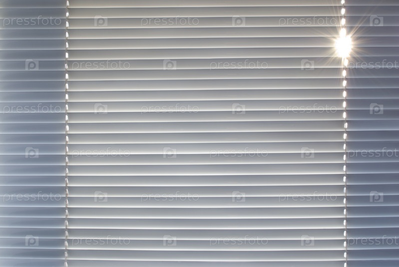 Солнце светит сквозь небольшое отверстие в закрытых жалюзи