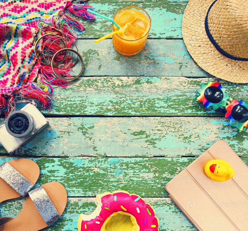 Зеленый и синий фон с женскими аксессуарами