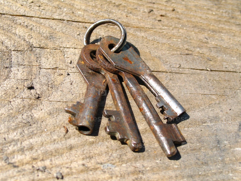 Старые ржавые ключи на деревянной доске