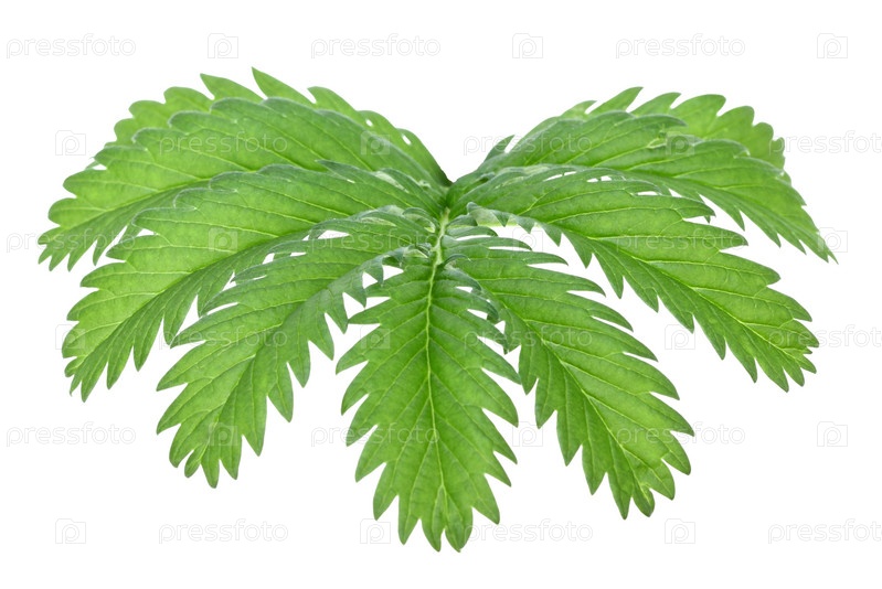Зеленый лист на белом фоне