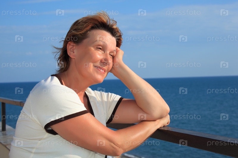 Портрет женщины в возрасте на фоне моря
