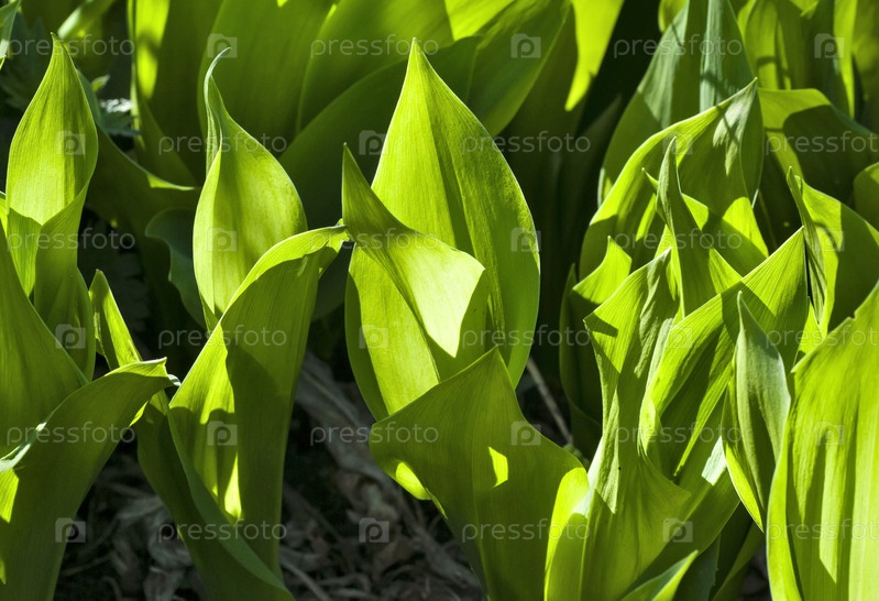 Молодые зеленые листья ландыша
