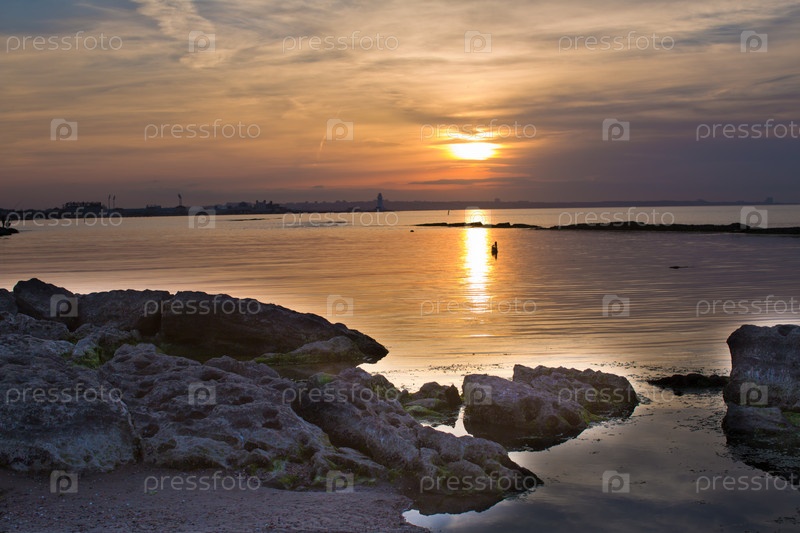 Красивый закат в Каспийское море. Азербайджан, Баку