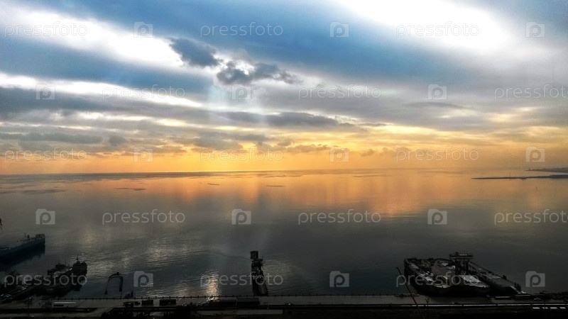 Красивый закат в Каспийское море. Азербайджан, Баку