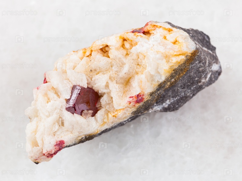 Карбонатитовый камень с кристаллом киновари