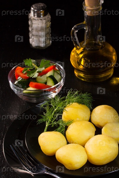 Вареный картофель, укроп, растительное масло и соль