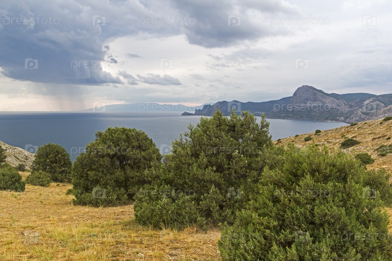 Побережье Черного моря в пасмурную погоду. Крым