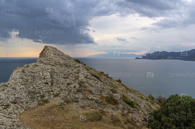 Вид с вершины горы к морю. Плохая погода. Крым