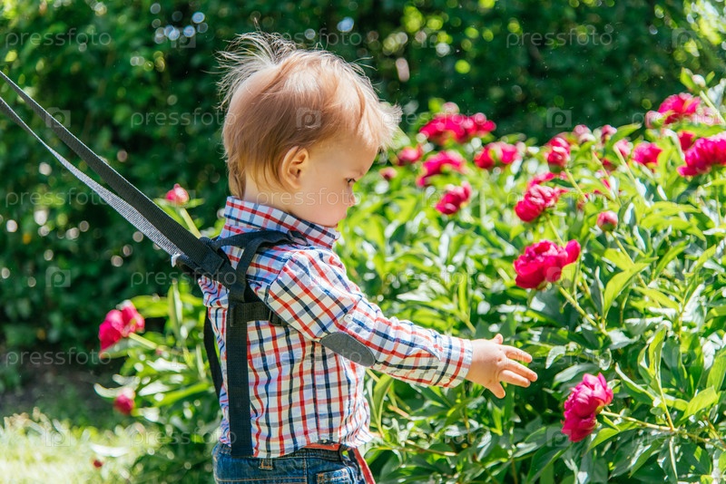 Мама страхует ребенка во время прогулки