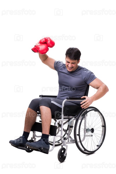 Боксер, восстанавливающийся после травмы на инвалидной коляске