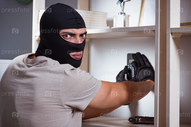Вор, носящий маску из балаклавы на месте преступления