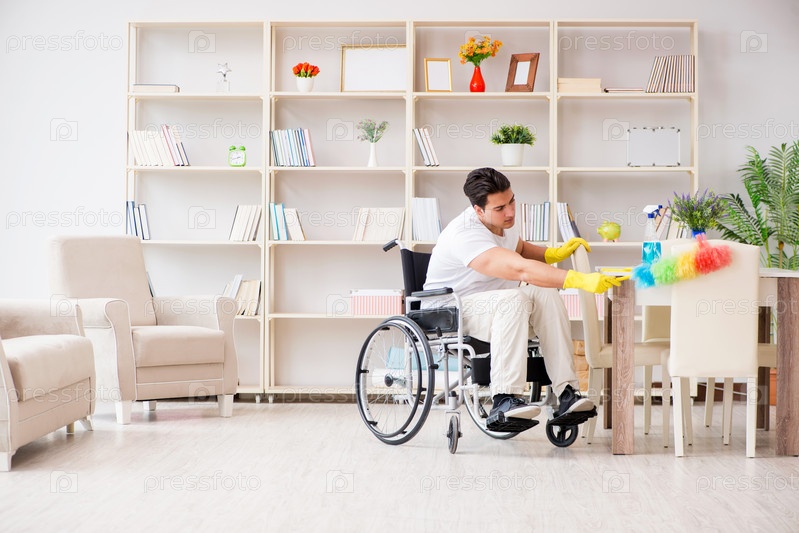 Уборщица-инвалид выполняет работу по дому