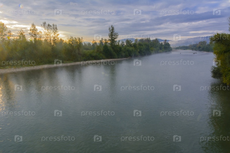 Озеро в горах для отдыха и рыбалки. Раннее утро