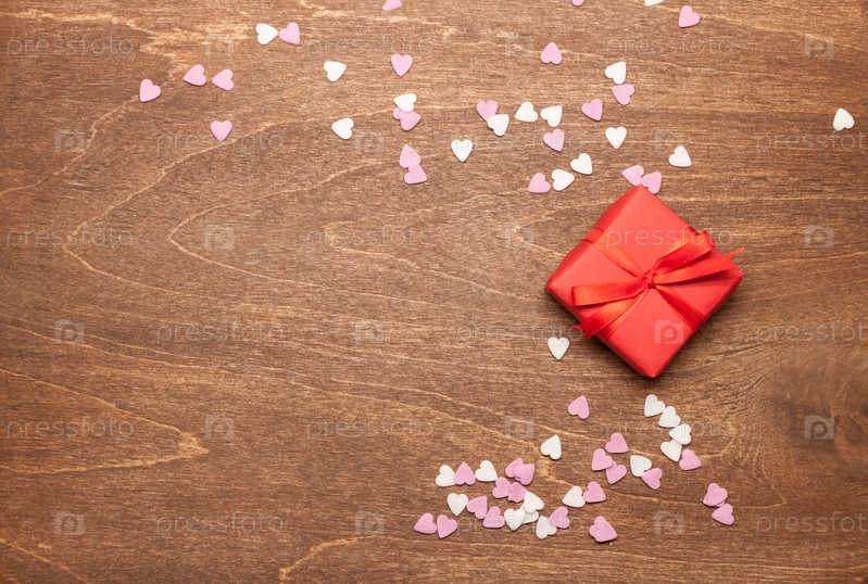 Красный подарок и сердца