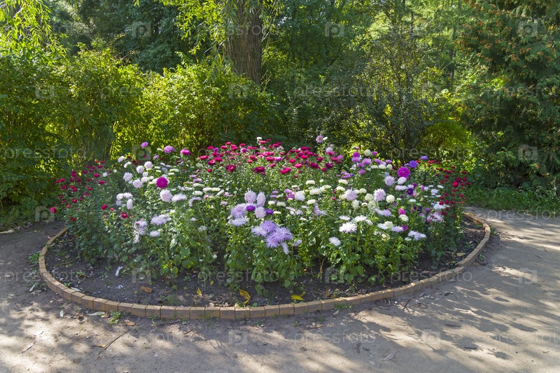 Клумба с красочными астрами в парке