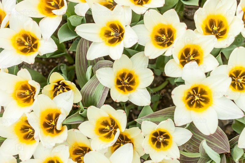 Красивые белые и желтые тюльпаны