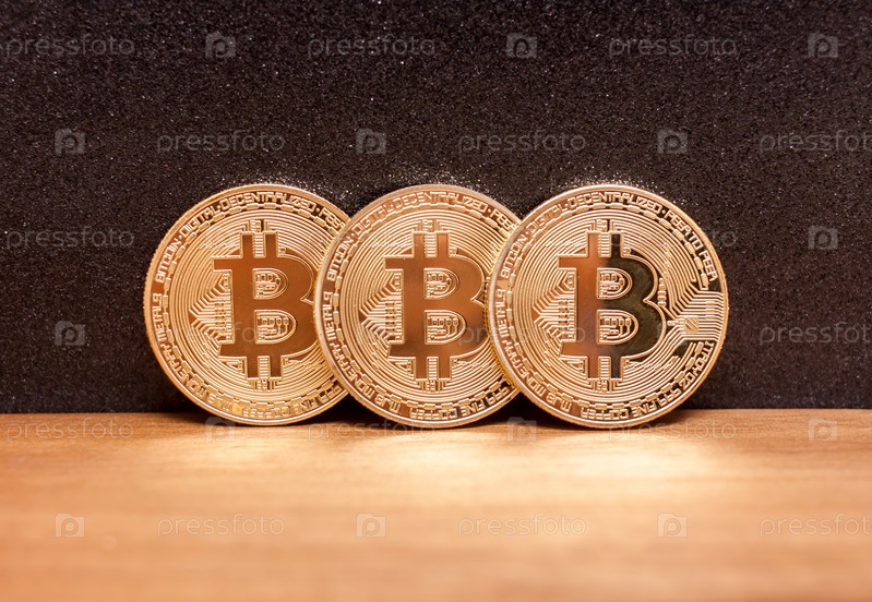 Три золотые монеты биткоин