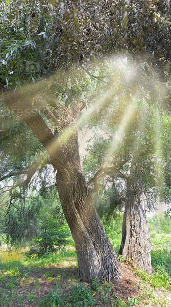 Старое дерево и лучи солнца пробивающиеся сквозь листву