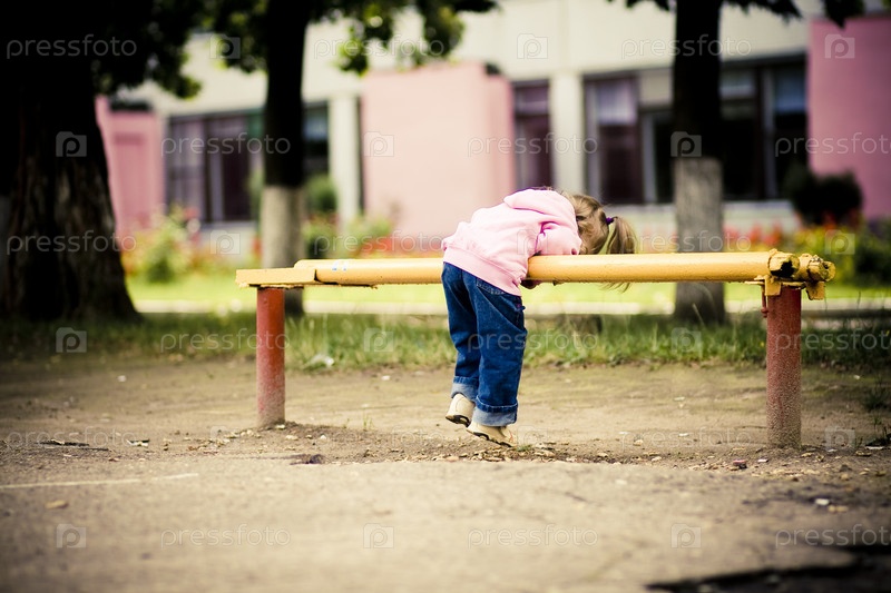 Маленькая девочка играет во дворе