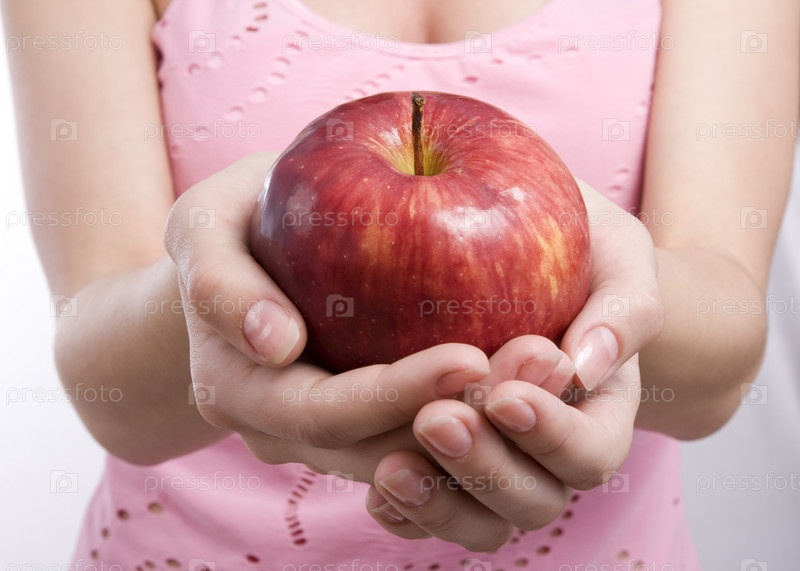 Женщина держит яблоко в руке