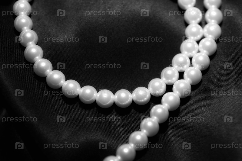 Белое жемчужное ожерелье на черной шелковой ткани