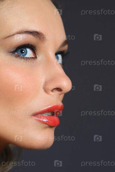 Крупным планом лицо молодой голубоглазой девушки