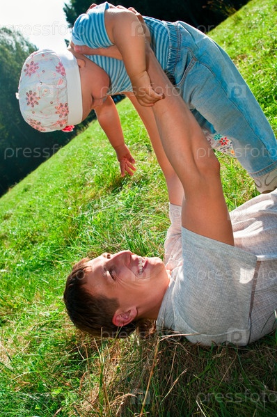 Отец играет с маленьким ребенком