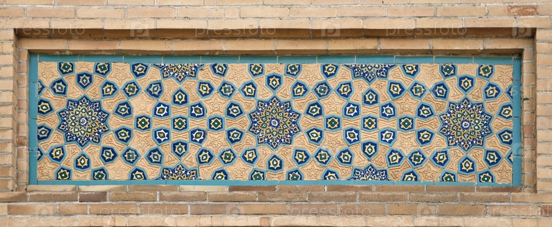Старая восточная мозаика на стене, Узбекистан