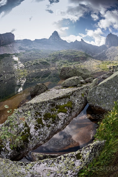 Фантастический солнечный день на горном озере в национальном парке Ергаки, Россия
