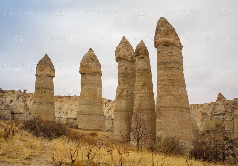 Вулканические скальные образования, известные как Дымоходы фей в Каппадокии, Турция