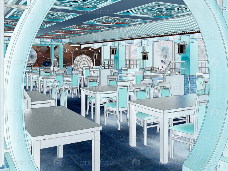 3D визуализация интерьера китайского ресторана