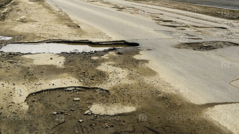 Ямы и канавы на разбитой асфальтированной городской дороге